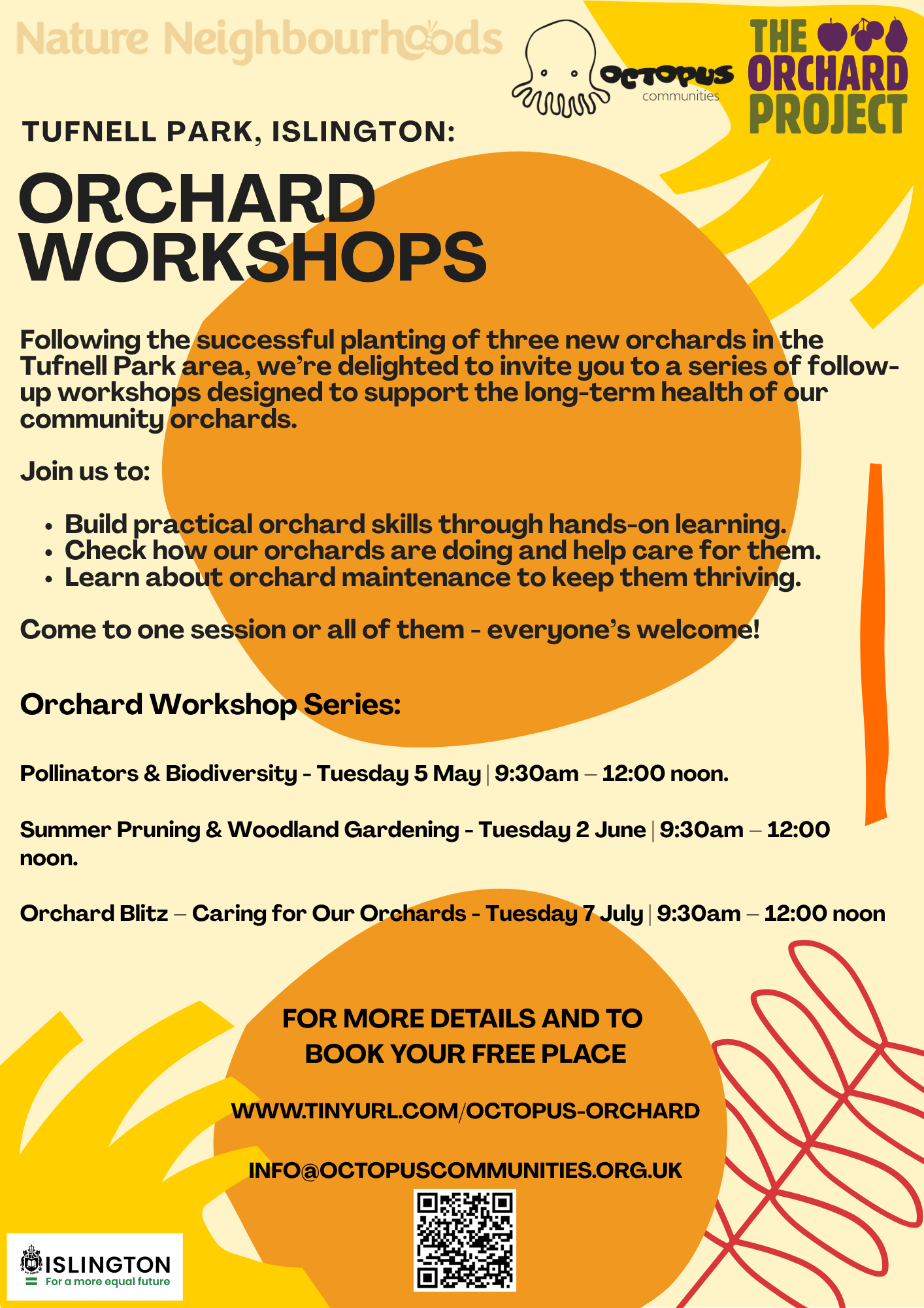 We have three exciting workshops planned, each designed to help you build practical skills while supporting the long-term health of our community orchards.